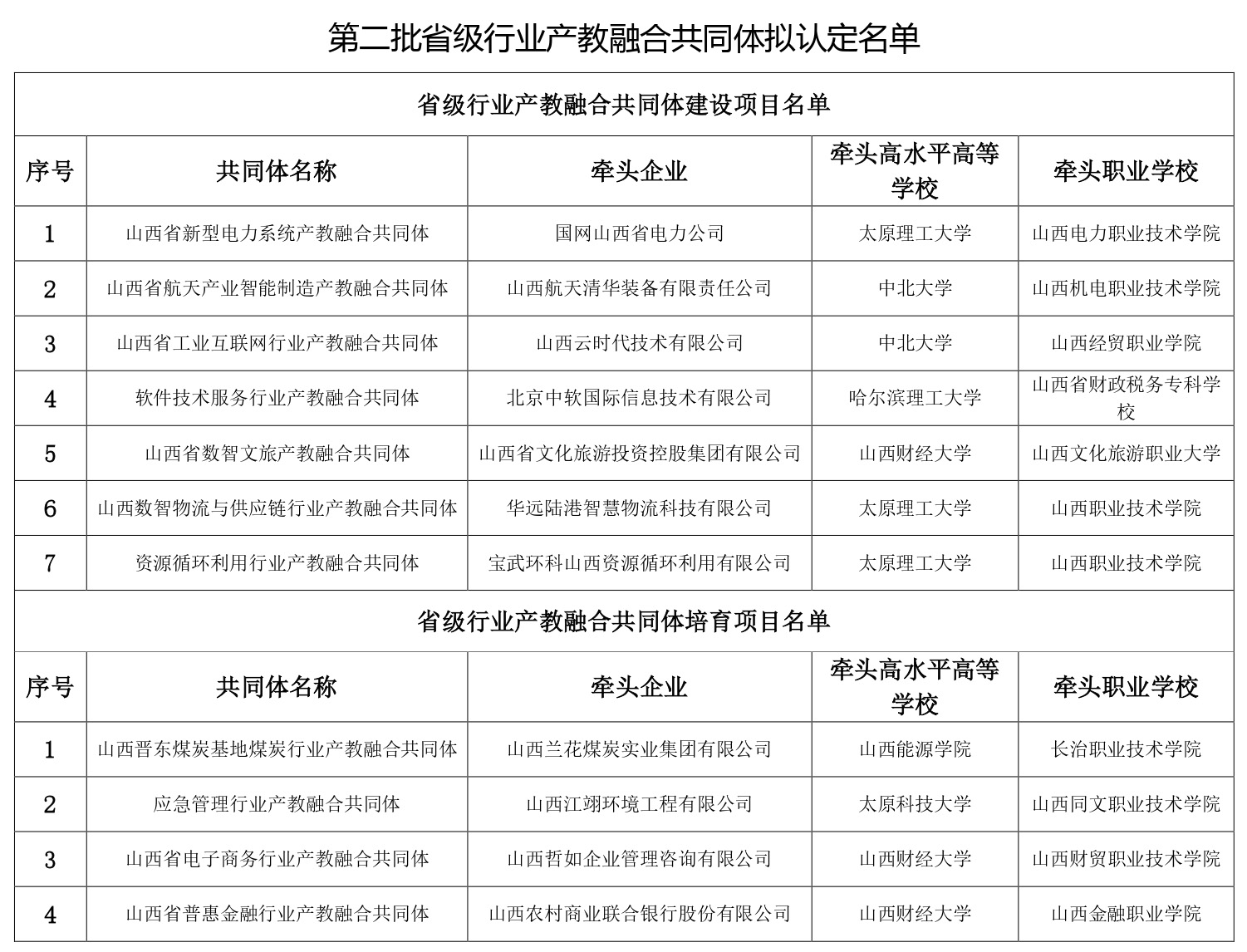 11月3日,山西省教育厅发布《关于第二批省级行业产教融合共同体拟认定名单的公示》。根据《山西省教育厅关于遴选省级行业产教融合共同体的通知》(晋教职成〔2024〕52号)要求,经各共同体自主申报、合规性审核、线上评审、现场答辩等相关工作程序,拟认定第二批省级行业产教融合共同体建设项目7个,省级行业产教融合共同体培育项目4个。公示期为2025年11月3日至11月7日。